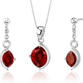 Museum Design 5.75 carats Marquise Cut Sterling Silver Rhodium Finish Garnet Pendant Earrings Set: Peora: Jewelry