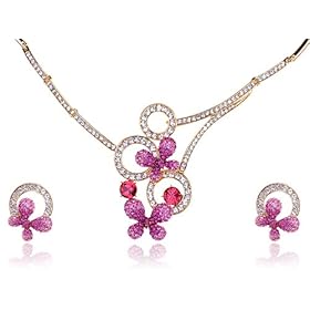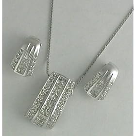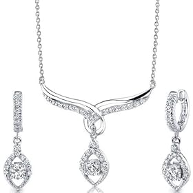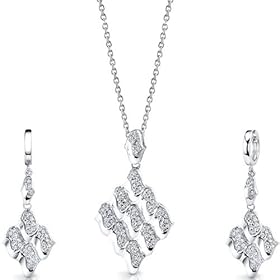 Exquisite Desire: Sterling Silver Rhodium Finish Pendant Necklace Earrings Set with Cubic Zirconia: peora: Jewelry
