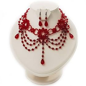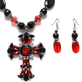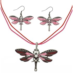 Ladies and Girls Charming Cute Pink and Red Dragonfly Necklace and Earring Set: Jewelry