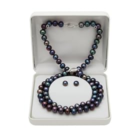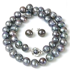 Pearl Freshwater Cultured Potato Black Necklace 9.5-10.0mm 17" and Earring 9.5-10.0 mm Gift Set By Bucasi: Jewelry