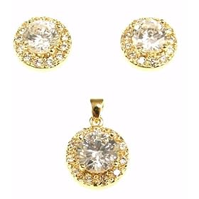 Kala-isjewels - Ladies 18ct Gold Plated CZ " Solitaire "Pendant ( 0,63" ) and Earrings: Jewelry