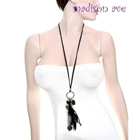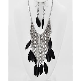 Black Feathers & Assorted Charms Velvet Cord Necklace Set: Jewelry