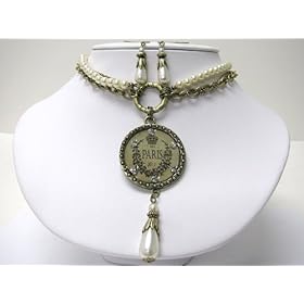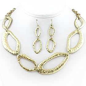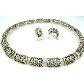 Two Tone Fashion Antiqued Finish Beaded Necklace Choker with Matchin Omega Clip Earrings Set: Jewelry