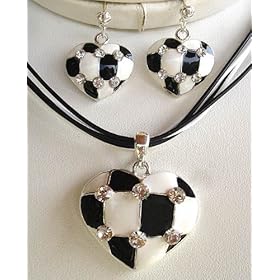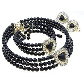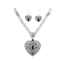 Fashion Costume Jewelry Vintage Style 20 Inch Long Marcasite and Black Crystal Heart Necklace and Earring Set: LaRaso: Jewelry