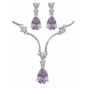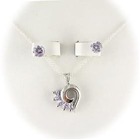 Lavender CZ Marquis Heart Sterling Silver Pendant Cable Chain 18 Inch Earrings: Jewelry