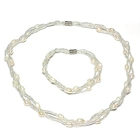 Twisted White Freshwater Cultured Pearl Necklace & Bracelet With Magnetic Clasp: Jewelry