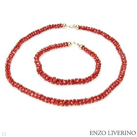 ENZO LIVERINO 18K Yellow Gold Corals Ladies Jewelry Set. Length 8 in. Total Item weight 11.5 g.: Jewelry