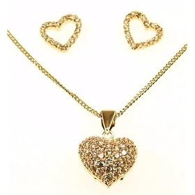 Kala-isjewels - Ladies 18ct Gold Plated CZ " Hearts "Pendant ( 1" ) , Earrings and Chain (17,71" ): Jewelry