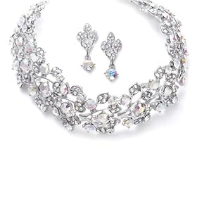 Mariell ~ Bold Crystal AB Vine Wedding Choker Necklace Set: Jewelry