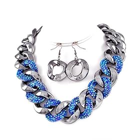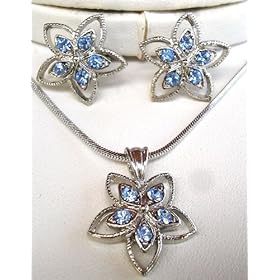 Light Blue Austrian Crystals Star Necklace Earrings Set: Jewelry