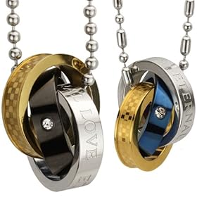 Eternal Love Stainless Steel Interlocking Triple Rings Pendant Necklace Couples Set 16" and 22": Dahlia: Jewelry