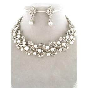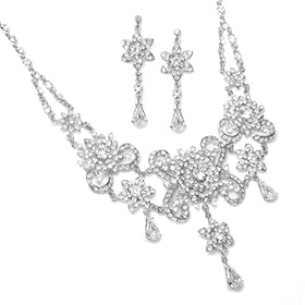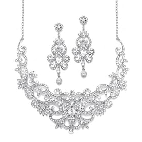 Magnificent Crystals Scroll Bridal Necklace Earrings Set: Jewelry