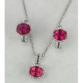 Earring and Pendant Set 1.0 K G VVS Diamonds and 7.6 K Tourmalinr Rubilite on 18K White Gold Made in Italy: Gino: Jewelry