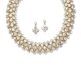 Mariell ~ Crystal Bezels Domed Gold Necklace Set: Jewelry