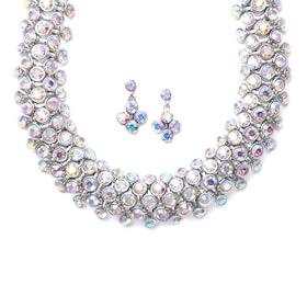Mariell ~ Iridescent AB Crystal Bezelled Necklace Set: Jewelry