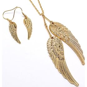 Elegant Gold Plated Angel Wings Necklace and Earrings Set: Jewelry