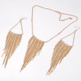 Fashion gold silver chain tassels dangle chandelier earrings collar chain necklace jewelry set for party: Jewelry