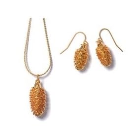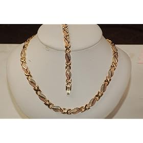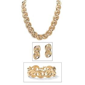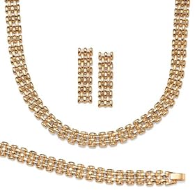 Gold Tone Necklace, Bracelet and Pierced Earring Jewelry Set: Jewelry