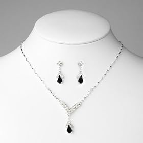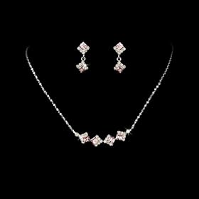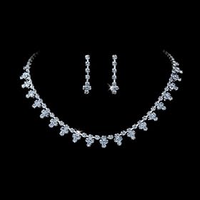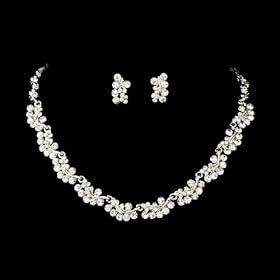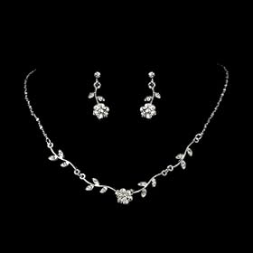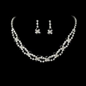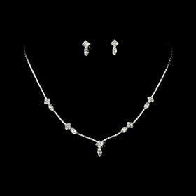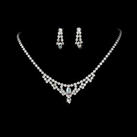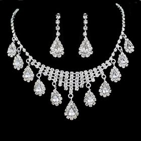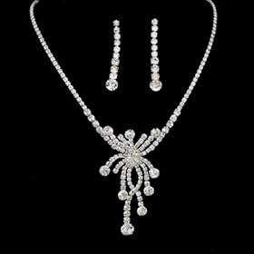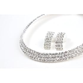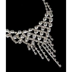 Silver Clear Rhinestone Wedding Necklace Earring Set: Jewelry