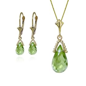 14k Necklace and Leverback Earrings with briolette Peridots: Jewelry