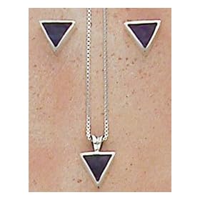 Southwestern Native American Navajo Triangular Earring and Pendant Set with Sugilite Inlay in Sterling Silver, tp200: Southwestern Jewelry: Jewelry