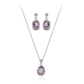 Sterling Silver 7.80 TCW Oval Amethyst and Diamond Pendant Earring Set: Jewelry