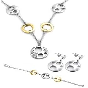 Stainless Steel Two Tone Silver and Gold Plated Necklace, Bracelet and Earrings Set For Women with Small Cubic Zirconias (Necklace - 20", Bracelet - 7.5"): Jewelry