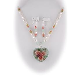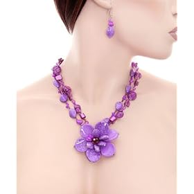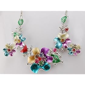 Metallic Hand Painted Pastel Exotic Flower Nature Bouquet Necklace Earring Set: Jewelry