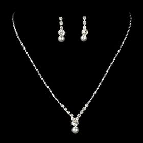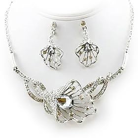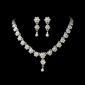 Silver Rhinestone Pearl Flower Necklace Earring Set: Jewelry
