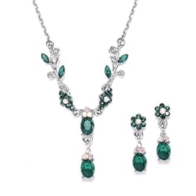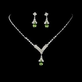 Sterling Silver & Emerald CZ Round Tear Drop Diamond Shape Combination Earring & Necklace Set: Jewelry