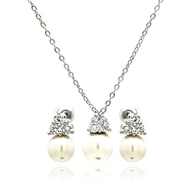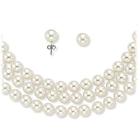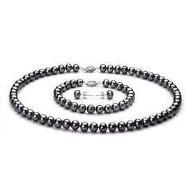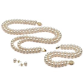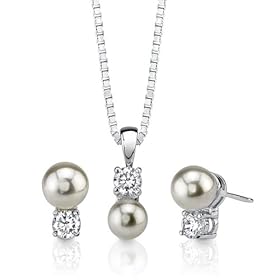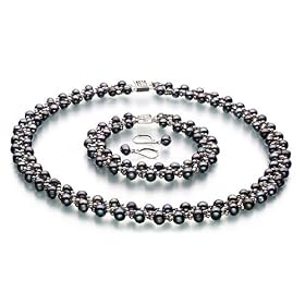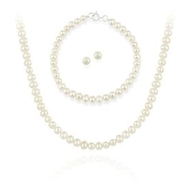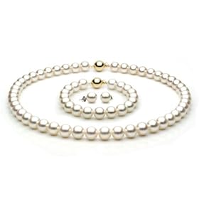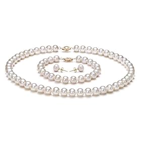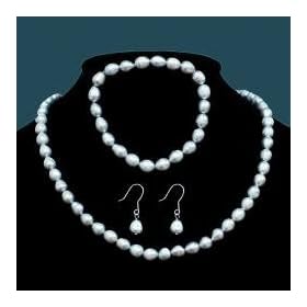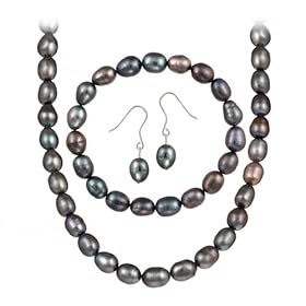 .925 Sterling Silver Freshwater Pearl Necklace, Bracelet and Earrings Set QSET-10037K-AM: Pearlzzz: Jewelry