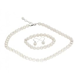 Sterling Silver 925 Fresh Water Cultured 6-6.5mm Pearl Set -Necklace, Bracelet & Stud Earrings: Jewelry