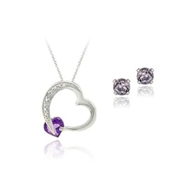 Sterling Silver Amethyst & Diamond Accent Floating Heart Pendant and Earrings Set: Jewelry