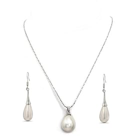 Mother Of Pearl Teardrop Pendant & Earring Set with Free 18" Steel Chain Necklace: Jewelry
