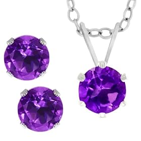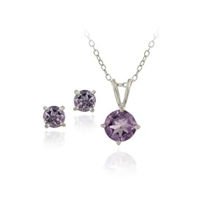 Sterling Silver 2ct TGW Amethyst Round Solitaire Pendant & Stud Earrings Set, 18": Jewelry