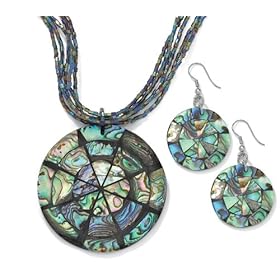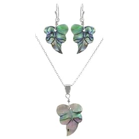Sterling Silver Abalone Leaf-Shaped Drop Earrings and Pendant Set, 16": Jewelry