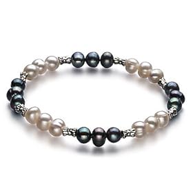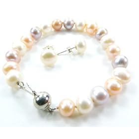 Multicolored Bracelet & Stud Earrings Set , 8mm Round Freshwater Cultured Pearls 925 Sterling Silver: Taren Lenea: Jewelry