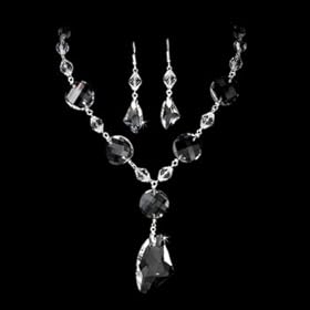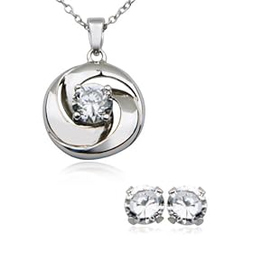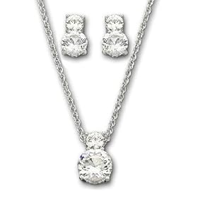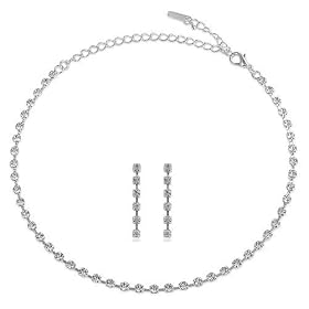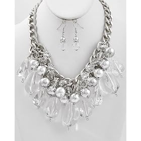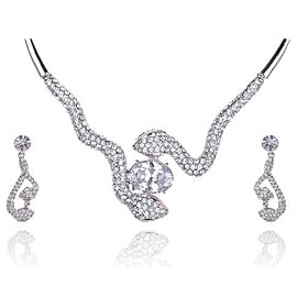Sparkling Clear Crystals Diamond Accent Fashion Necklace Set: Jewelry