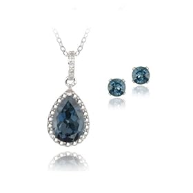 Sterling Silver 4.3ct London Blue Topaz & Diamond Accent Teardrop Necklace Earrings Set: Jewelry