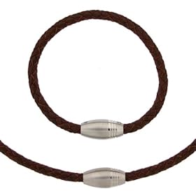 Set Necklace Bracelet Leather Brown Woven Stainless Steel Link Magnetic Bucasi: Jewelry