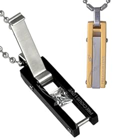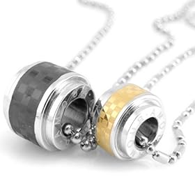 Amour Love Stainless Steel Checker Design Barrel Pendant Necklace Couples Set 18" and 22" Chain: Dahlia: Jewelry