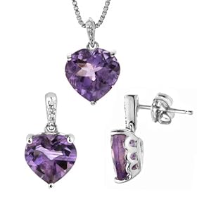 Sterling Silver Amethyst and Diamond Earrings and Pendant Set (0.01cttw, I-J Color, I2-I3 Clarity), 18": Jewelry