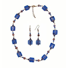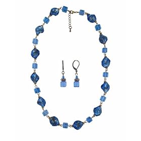 Necklace - Earrings Set - N491 - Murano & Glass Beads + Matching Earrings ~ Blue Twists and Cubes: Jewelry