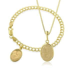 Mother and Baby Charm Bracelet and Pendant Set in Gold Plated Sterling Silver: Jewelry