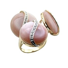 Pink Mother Of Pearl Round Stasis Earrings and Ring Set, 14k Gold: Jewelry