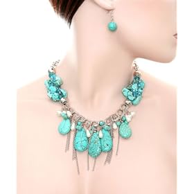 3-Piece Set Vibrant Simulated Turquoise Oval Necklace Bracelet Earring Bucasi: Jewelry