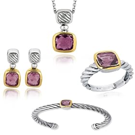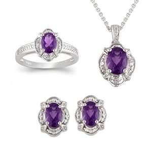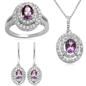 Sterling Silver Oval Amethyst with Created White Sapphire Accents Ring, Pendant Necklace and Earrings Diamond Box Set: Jewelry