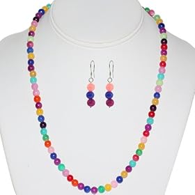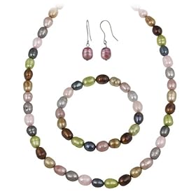 Multi-Color Dyed Freshwater Cultured Pearl Necklace, Bracelet and Earring Set with Sterling Silver Clasp: Jewelry