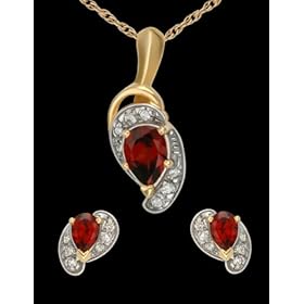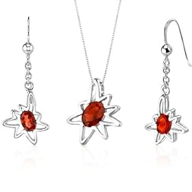 Starburst 2.25 carats Oval Shape Sterling Silver Rhodium Finish Garnet Pendant Earrings Set: Peora: Jewelry