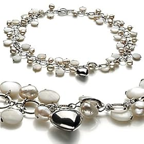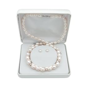 .925 Sterling Silver Freshwater Pearl White and Sterling Silver Beads Necklace, Bracelet and Earrings Set QSET-10309-AM: Pearlzzz: Jewelry